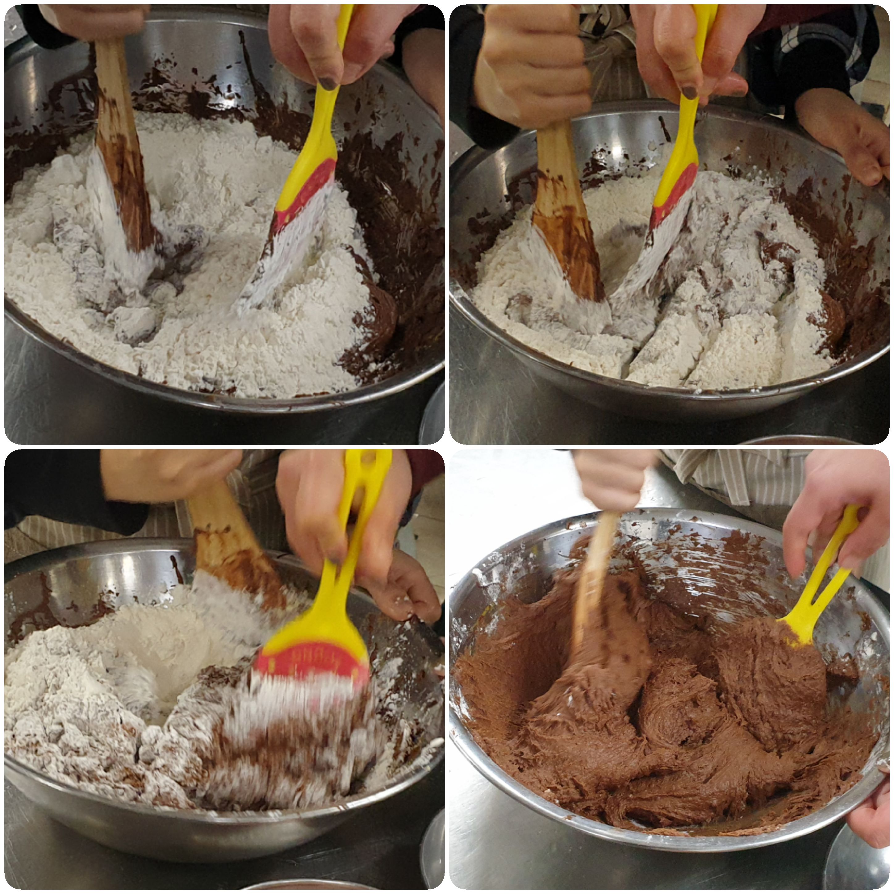 6. 미리 채 쳐놓은 가루재료(밀가루, 코코아파우더, 중력분)를 넣고 섞어준다.