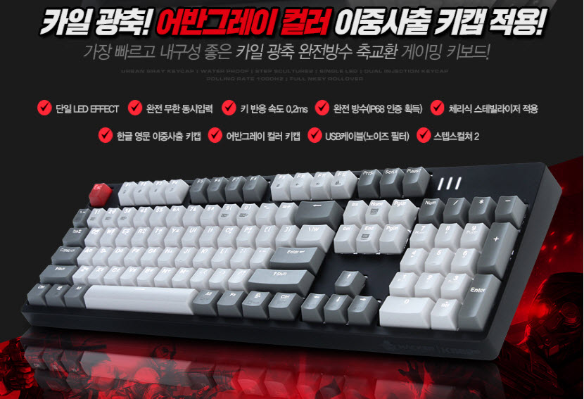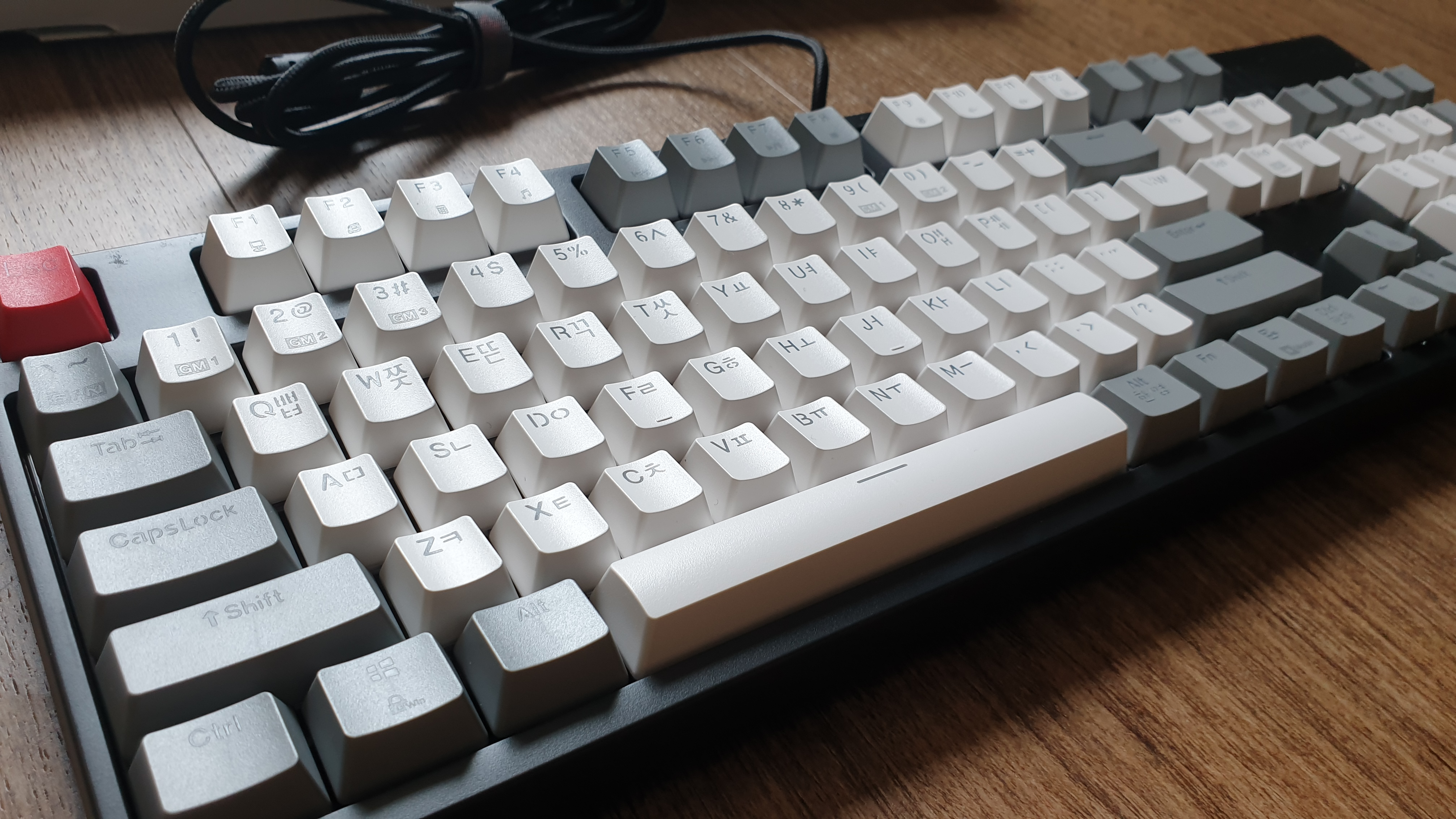 도시적인 이미지의 색 조합으로 단색 키보드보다 디자인적으로 우수하여 이 키보드를 구매하게 되었습니다.