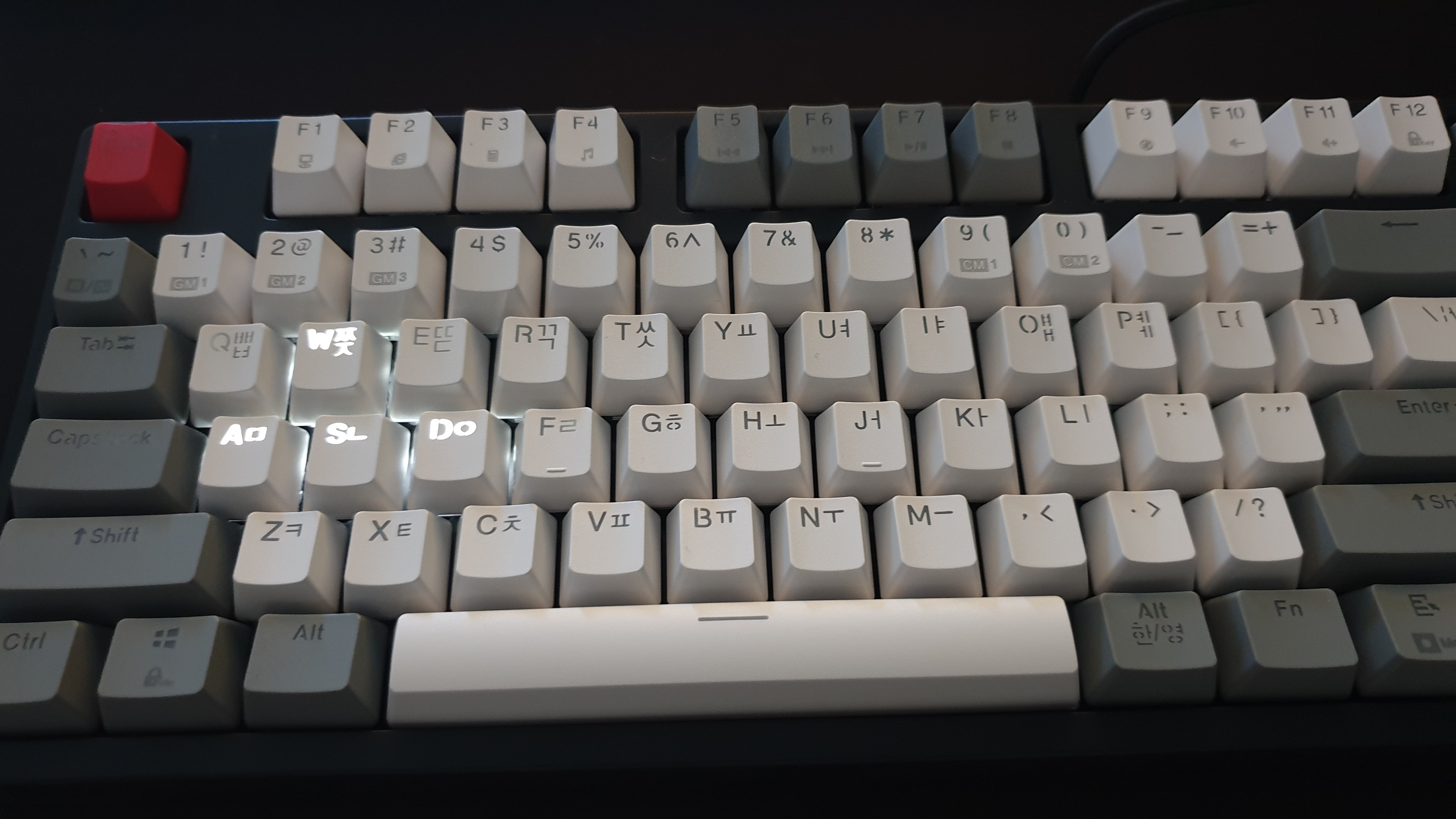 게임 관련 키 버튼만 LED가 들어옵니다. (A, S, D, W), 방향키