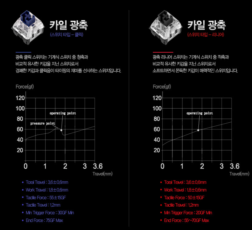- 집에서 사용하거나 게임용으로는 클릭형이 좋을거 같고, 업무용으로 사용하려면 리니어형으로 사용하는게 좋을거 같습니다.