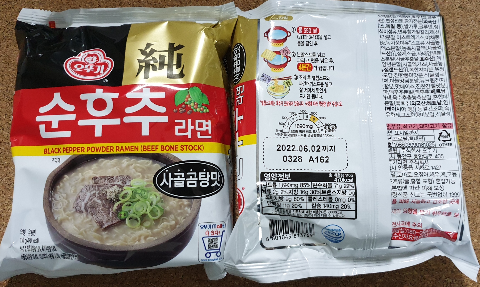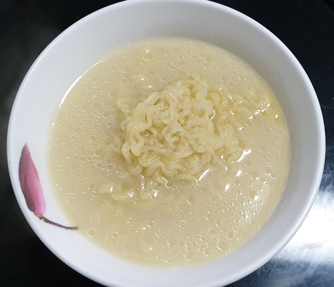 사리곰탕면보다 인공적인 맛이 덜하고, 좀 더 진한 곰국 느낌입니다.