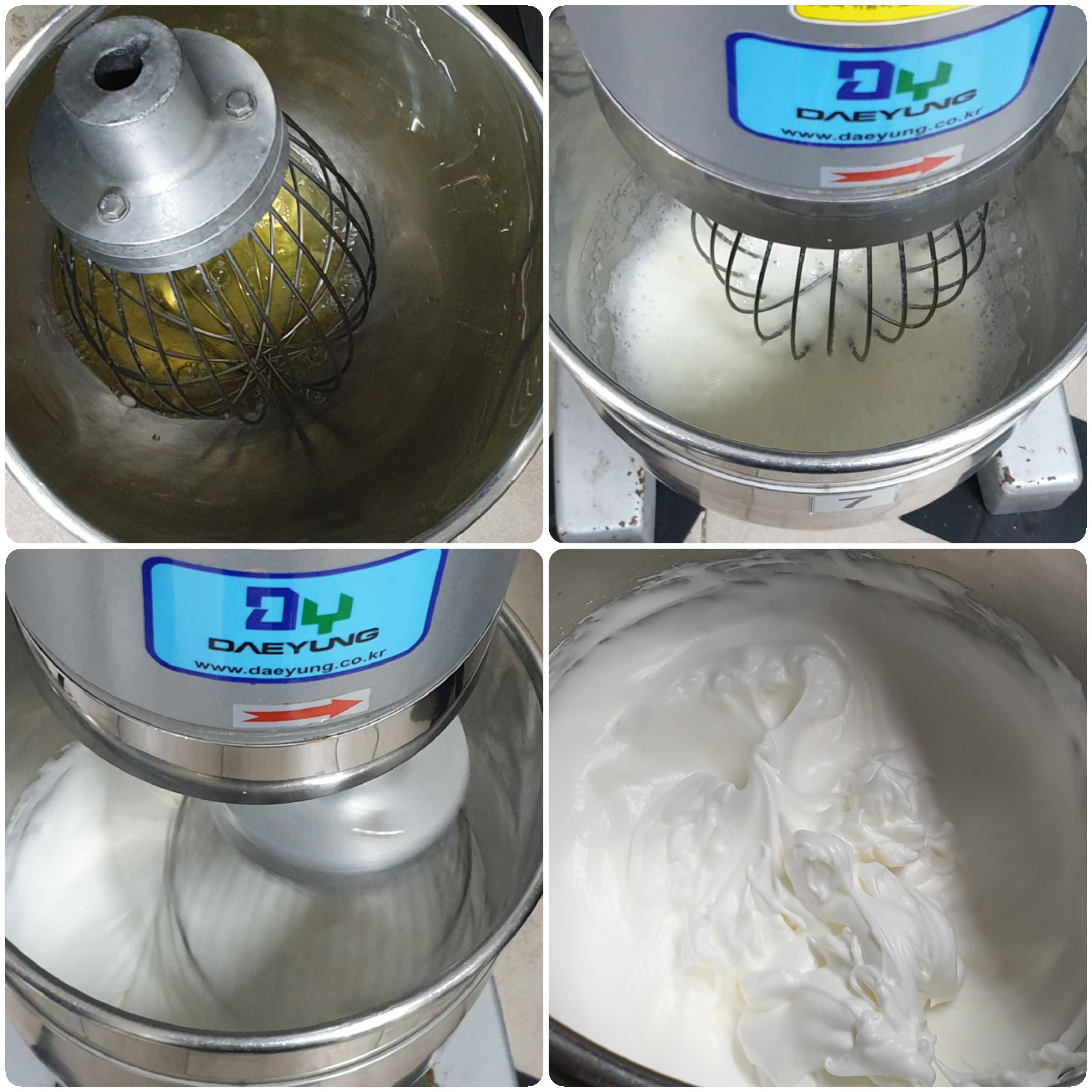 거품이 꺼지지 않게 휘핑기로 높게 저어주고