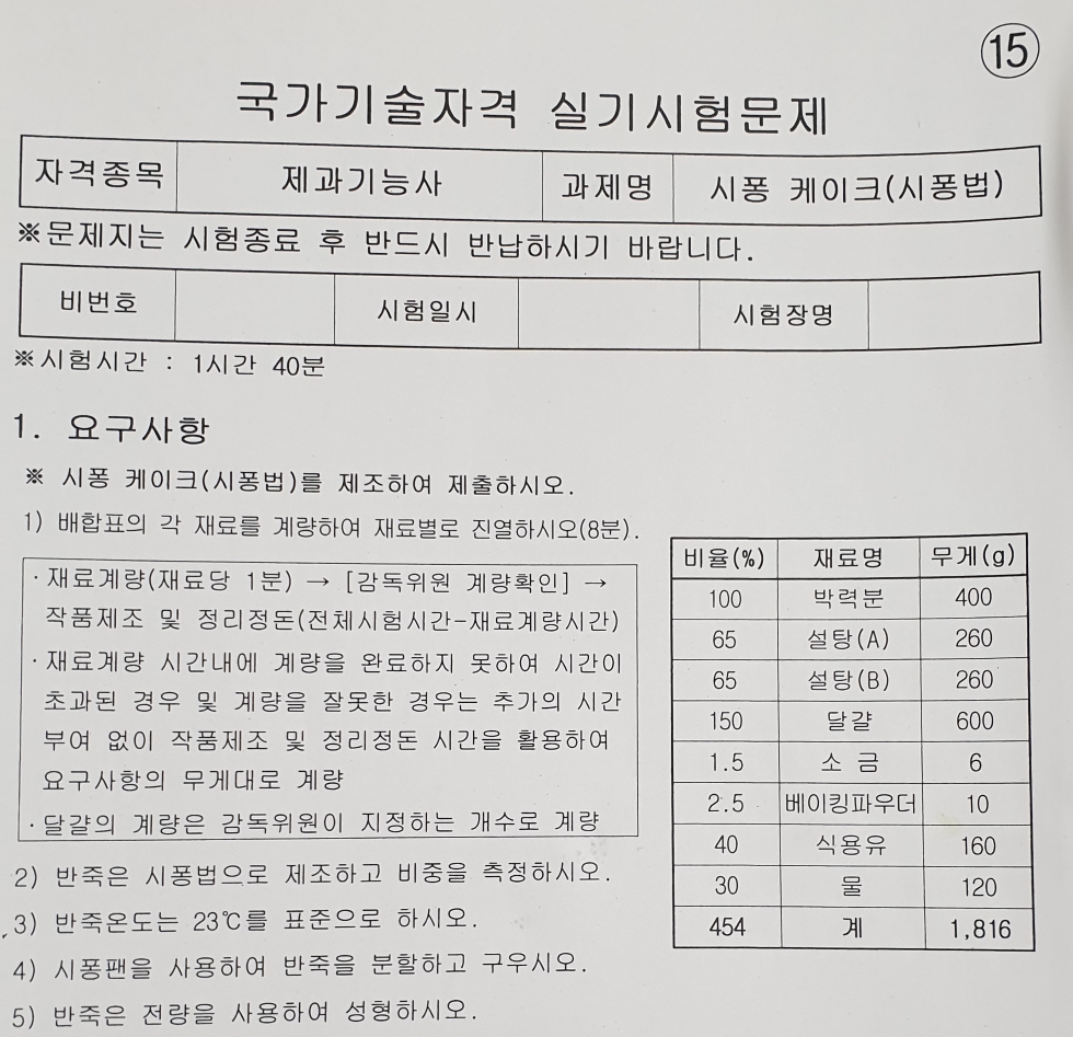박력분 - 400, 설탕A - 260, 설탕B - 260, 소금 - 6