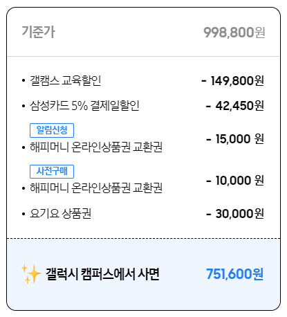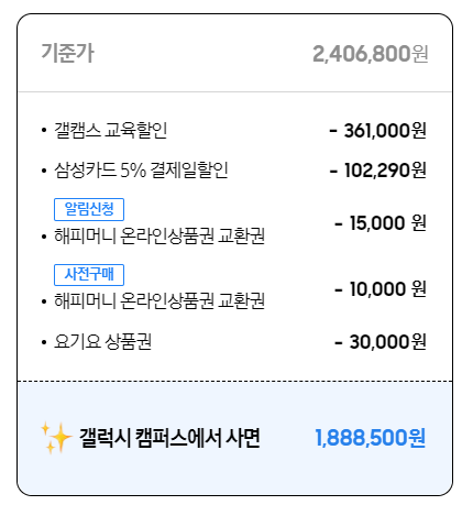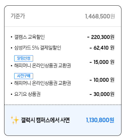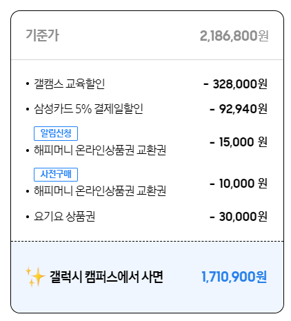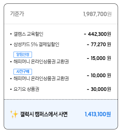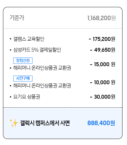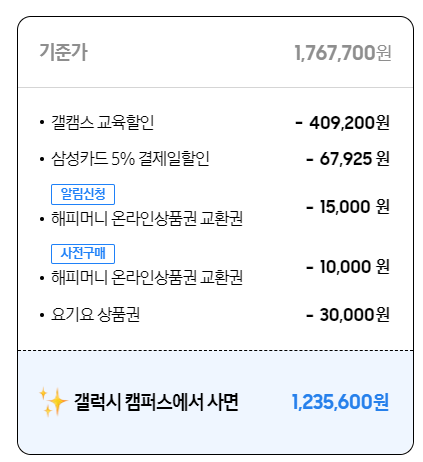 이번에 새로 공개된 갤럭시탭 S9의 갤럭시 캠퍼스 가격입니다.