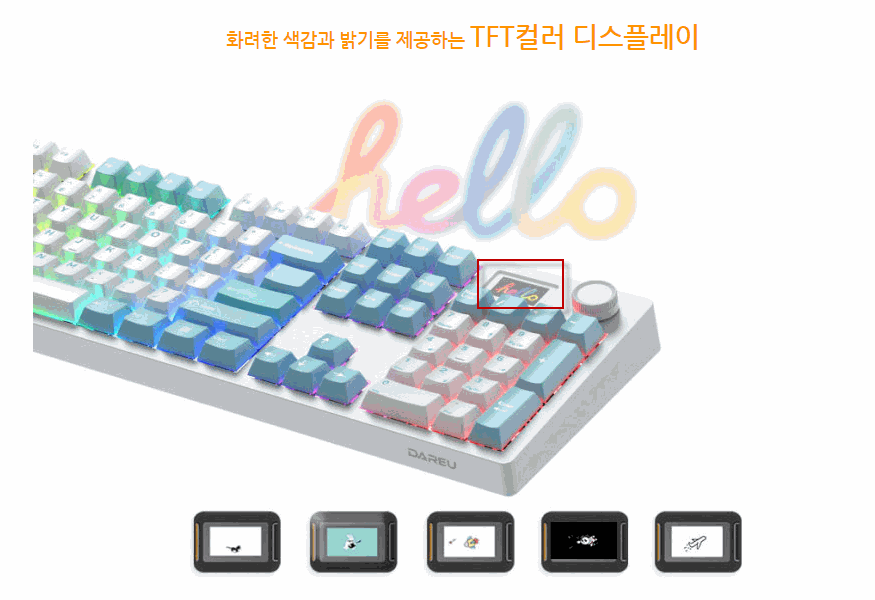 - 다얼유만의 장점인 키보드에 액정화면이 존재하며, 커스텀으로 사용자가 이미지를 넣을 수 있습니다.