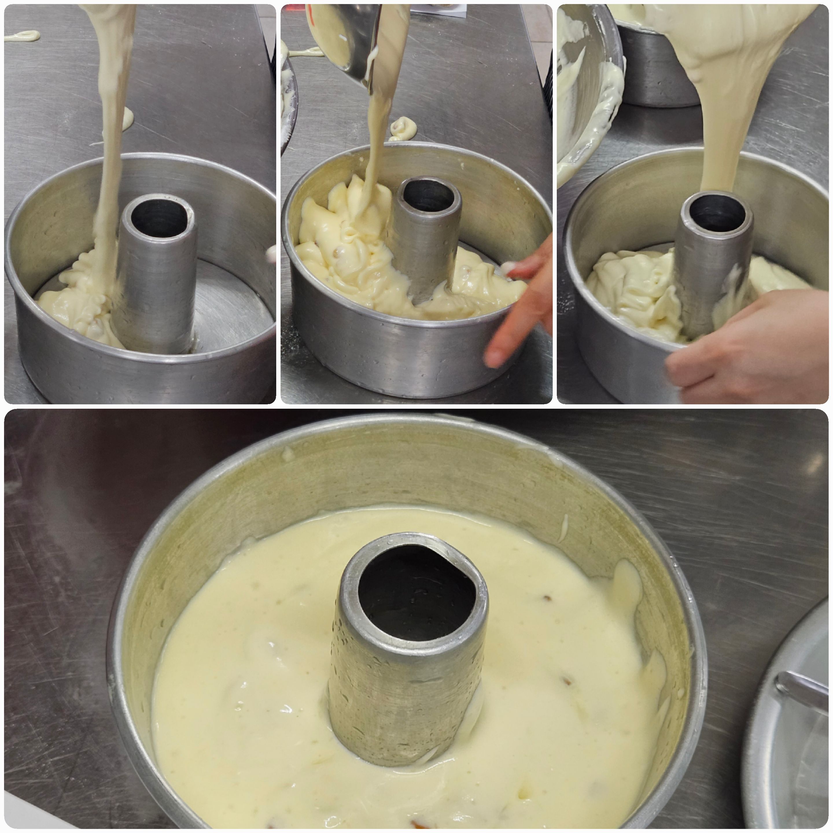 10. 완성된 반죽을 쉬폰틀에 넣어준다.