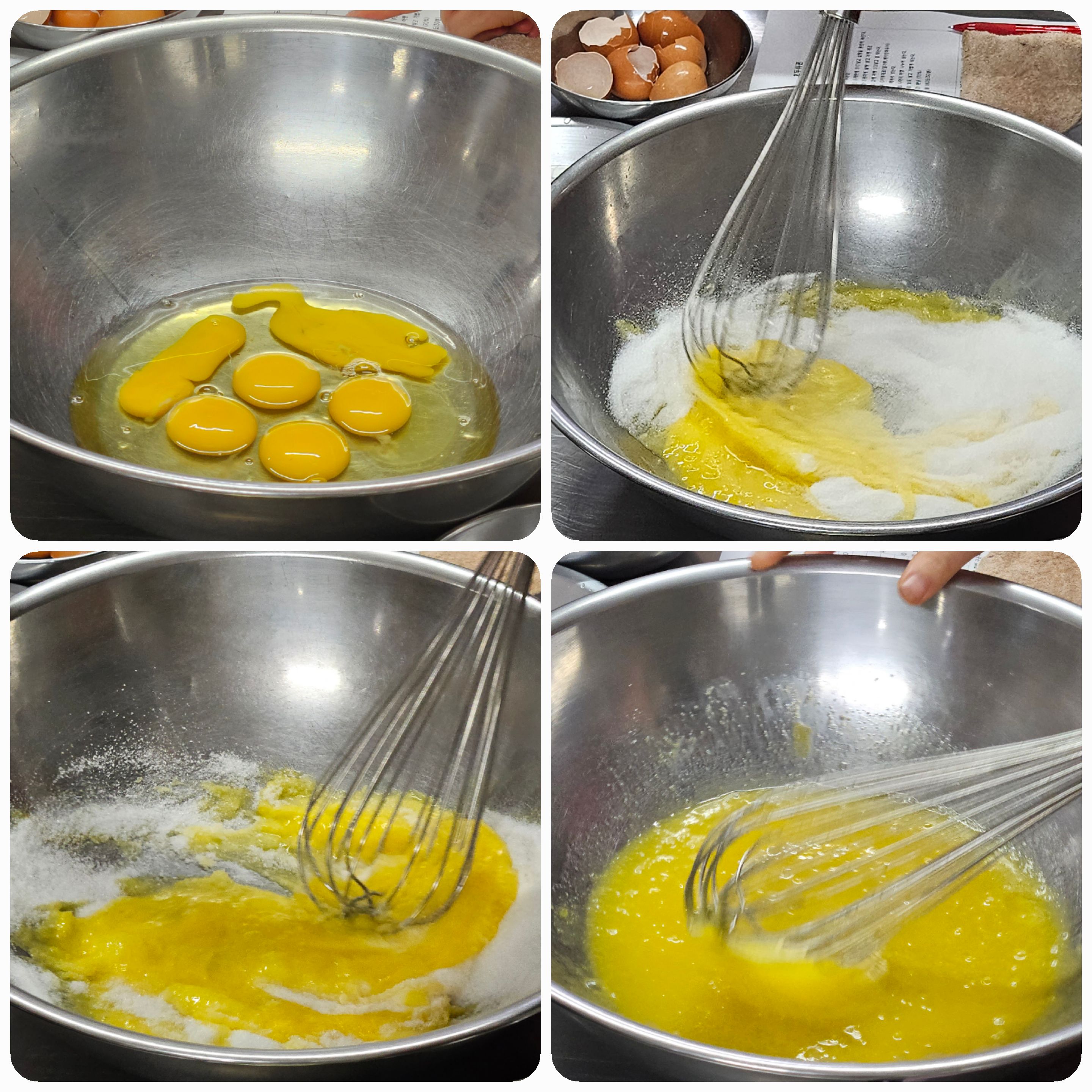 02. 계란에 설탕A, 소금을 넣고 설탕이 다 녹을 때 까지 휘핑한다.