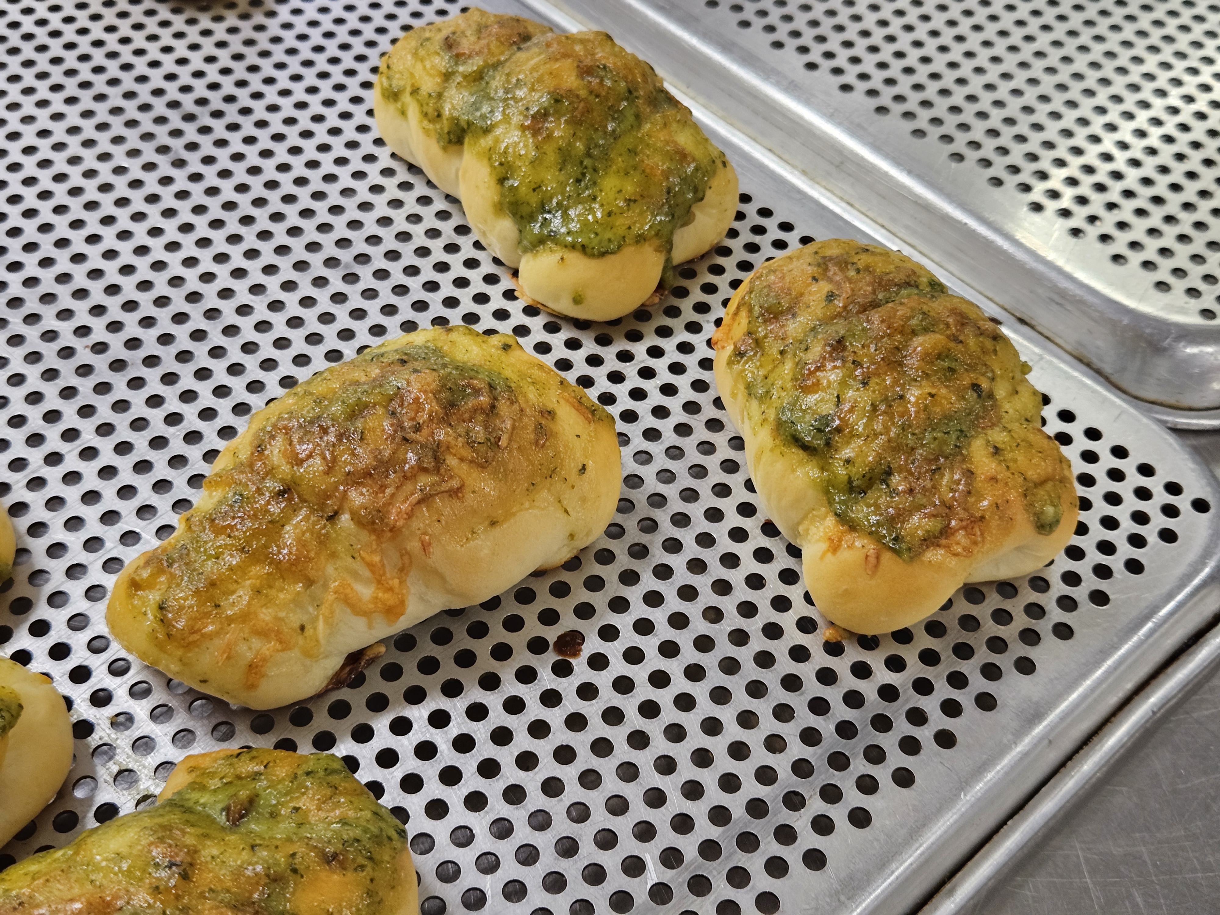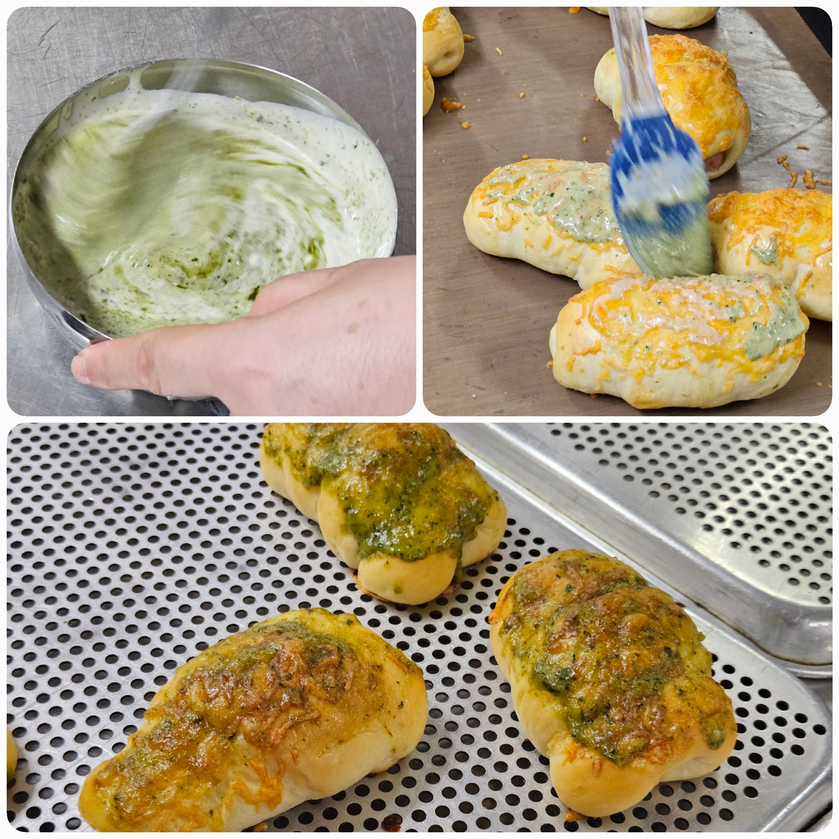 13. 굽고 나온 빵을 빼서, 빠르게 토핑을 다시 한번 발라줍니다