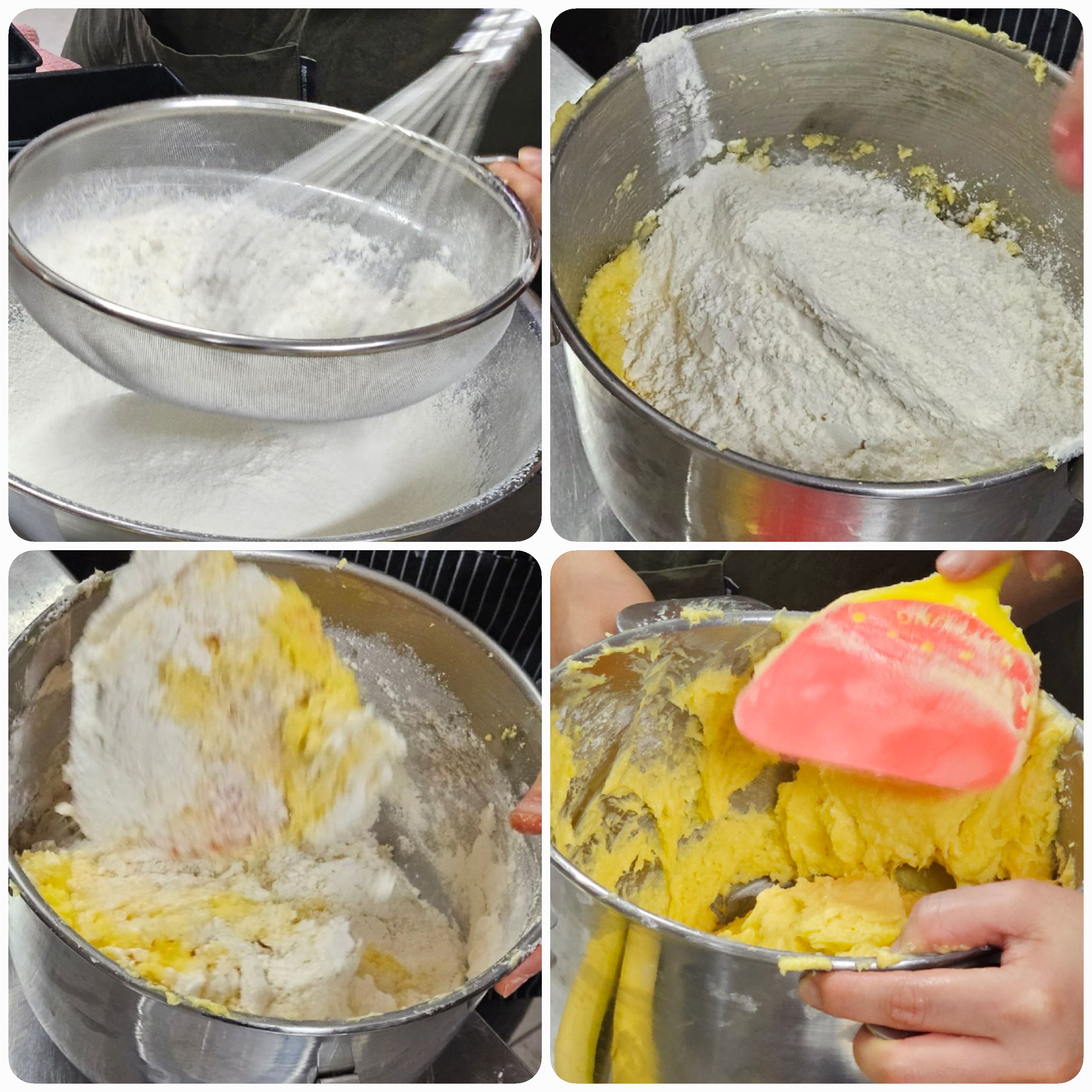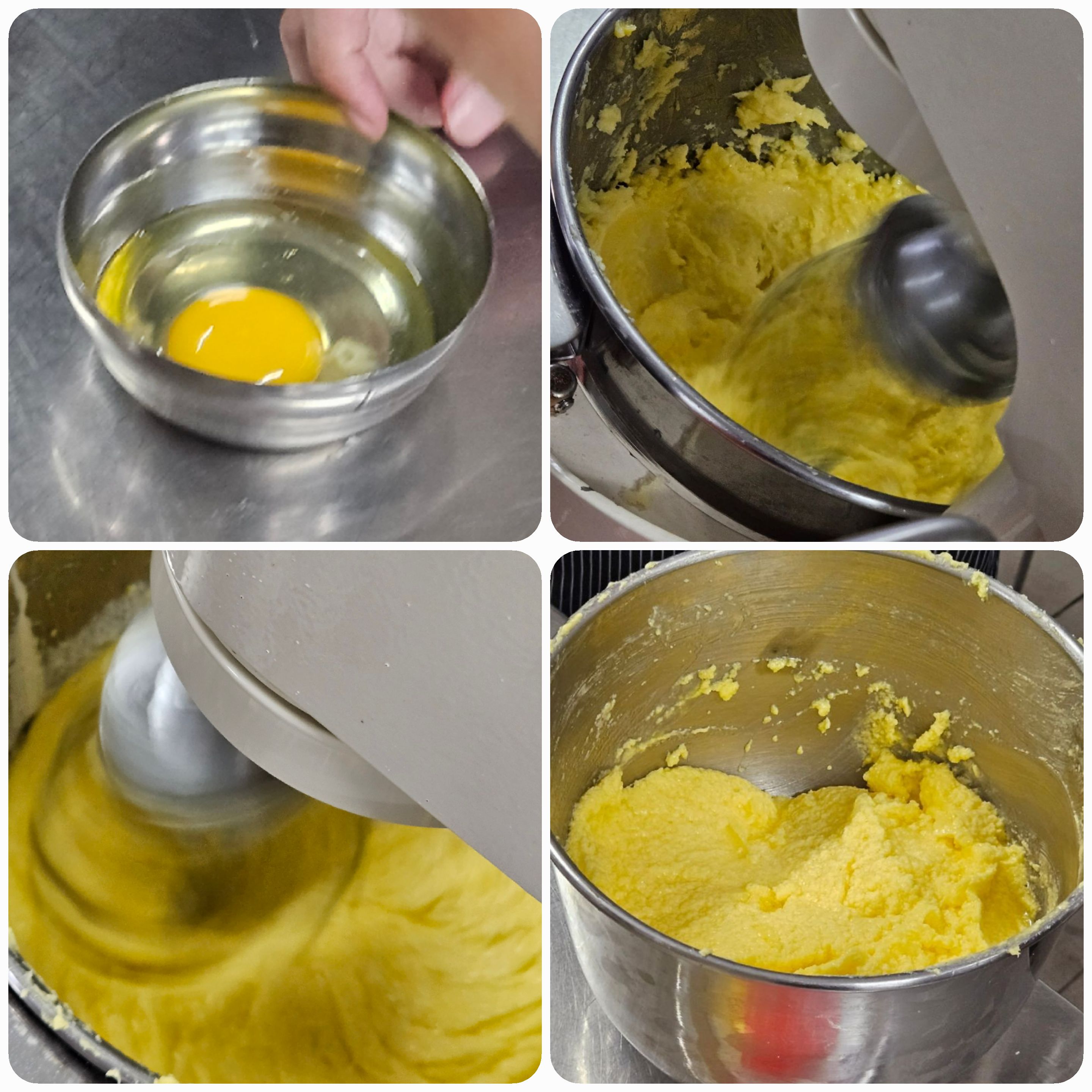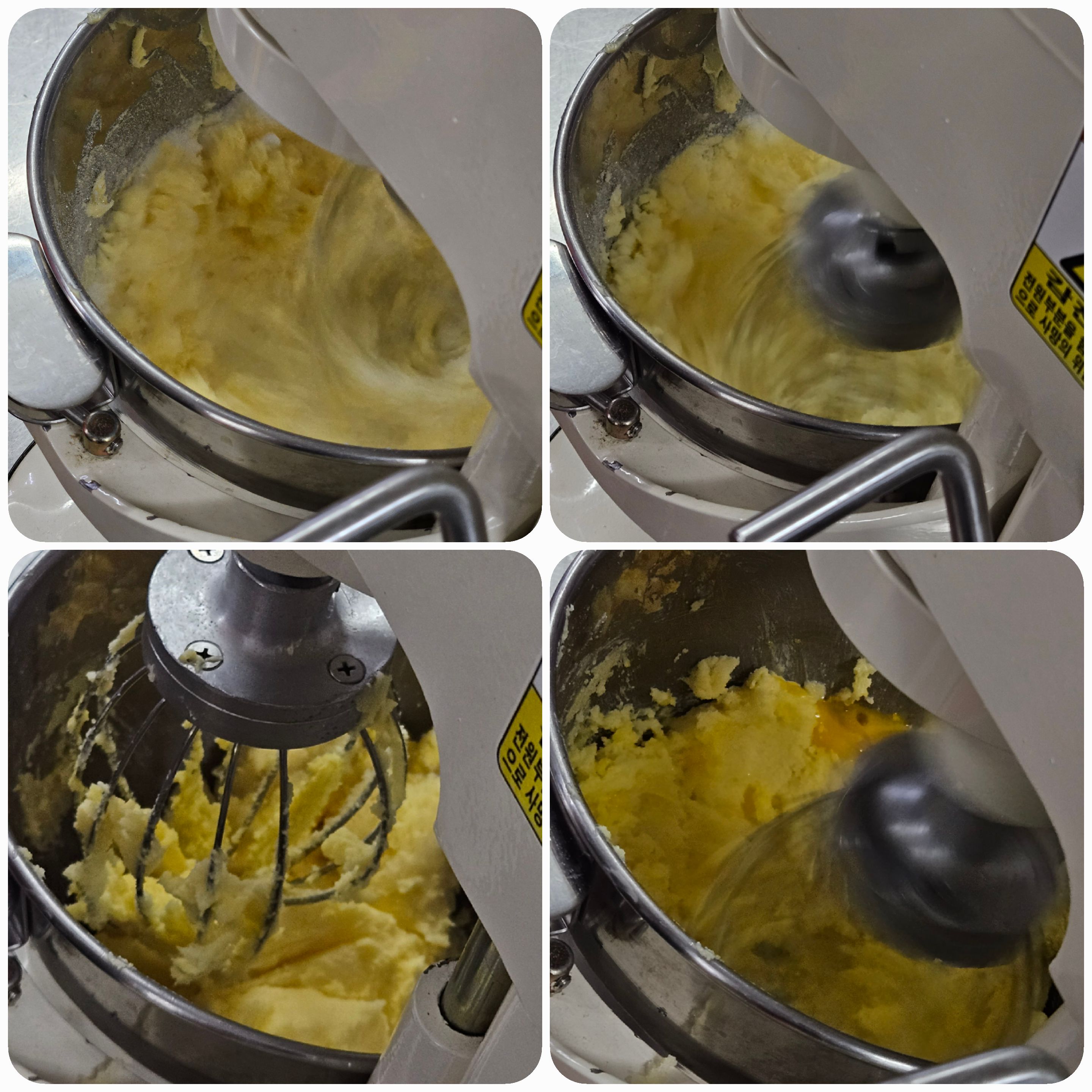 ※ 계란과 버터는 잘 섞이지 않기 때문에 충분히 섞인 후에 계란을 넣어야 계란과 버터가 분리되는 걸 막아줍니다.