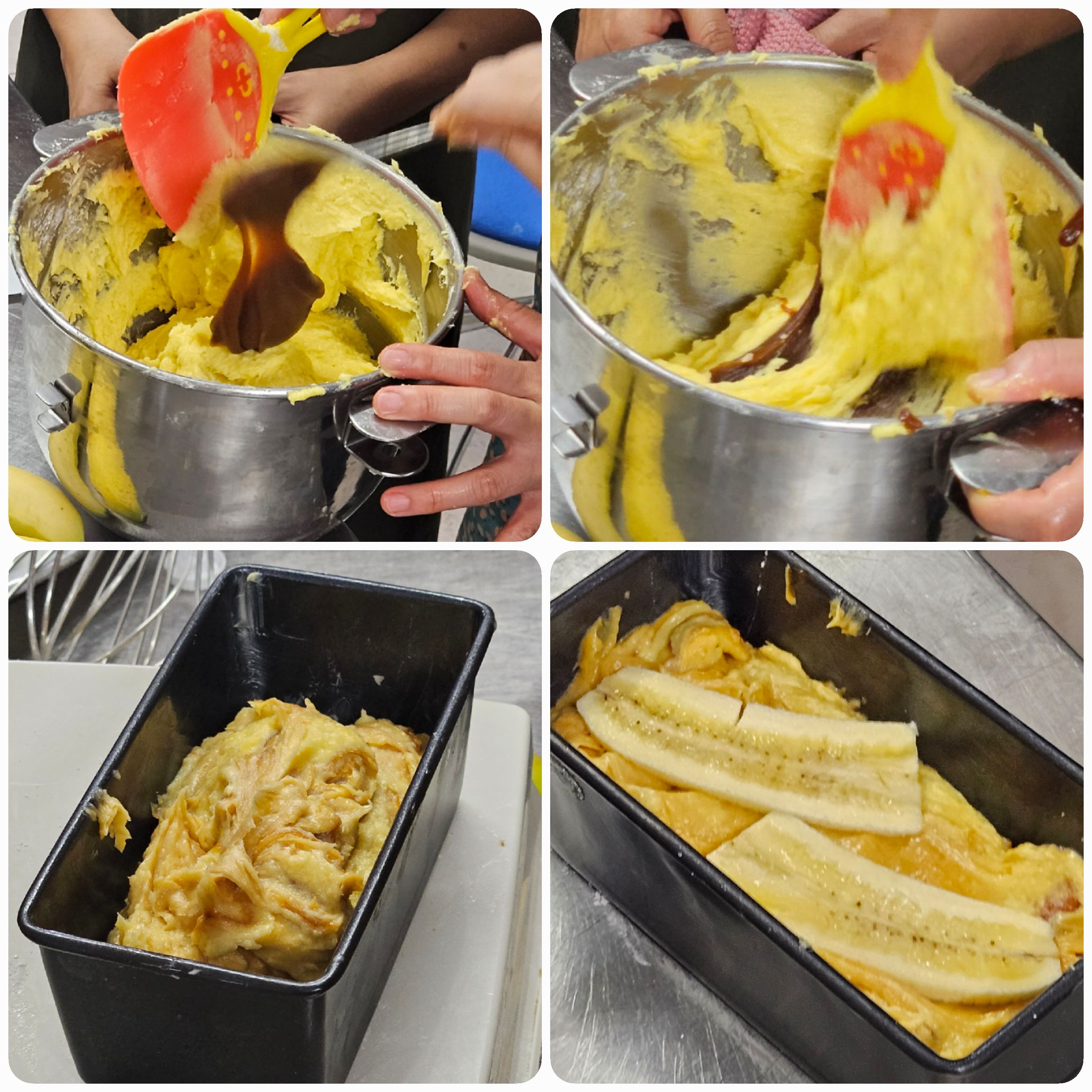 09. 파운드틀에 팬닝 후, 바나나를 잘라 모양을 내주세요