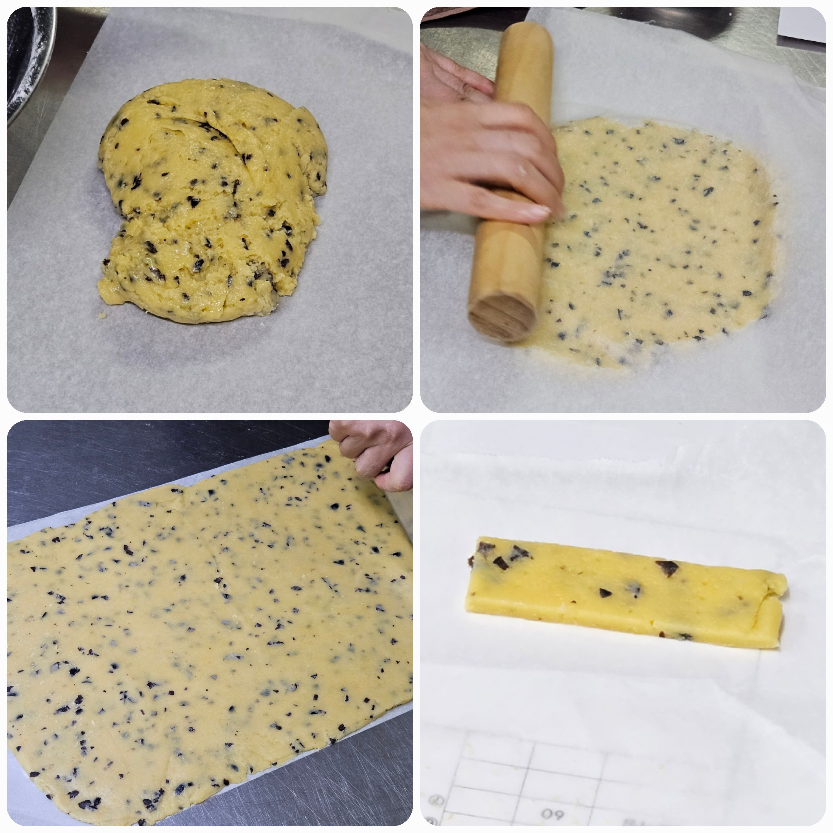 09. 휴지된 반죽을 먹기 좋게 잘라줍니다.