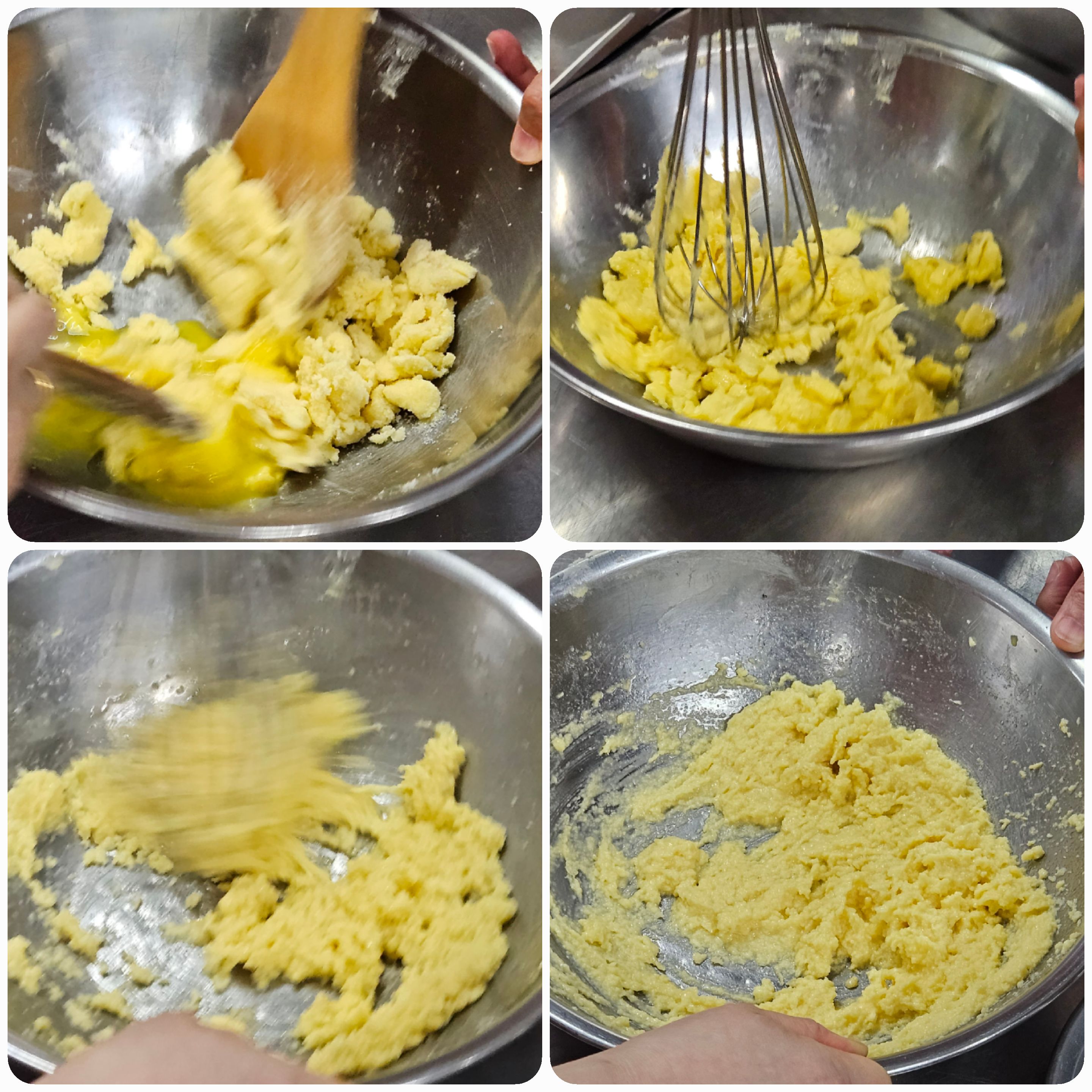 06. 채친 가루재료를 반죽(04)에 넣고 잘 칼로 자르듯이 섞어줍니다.