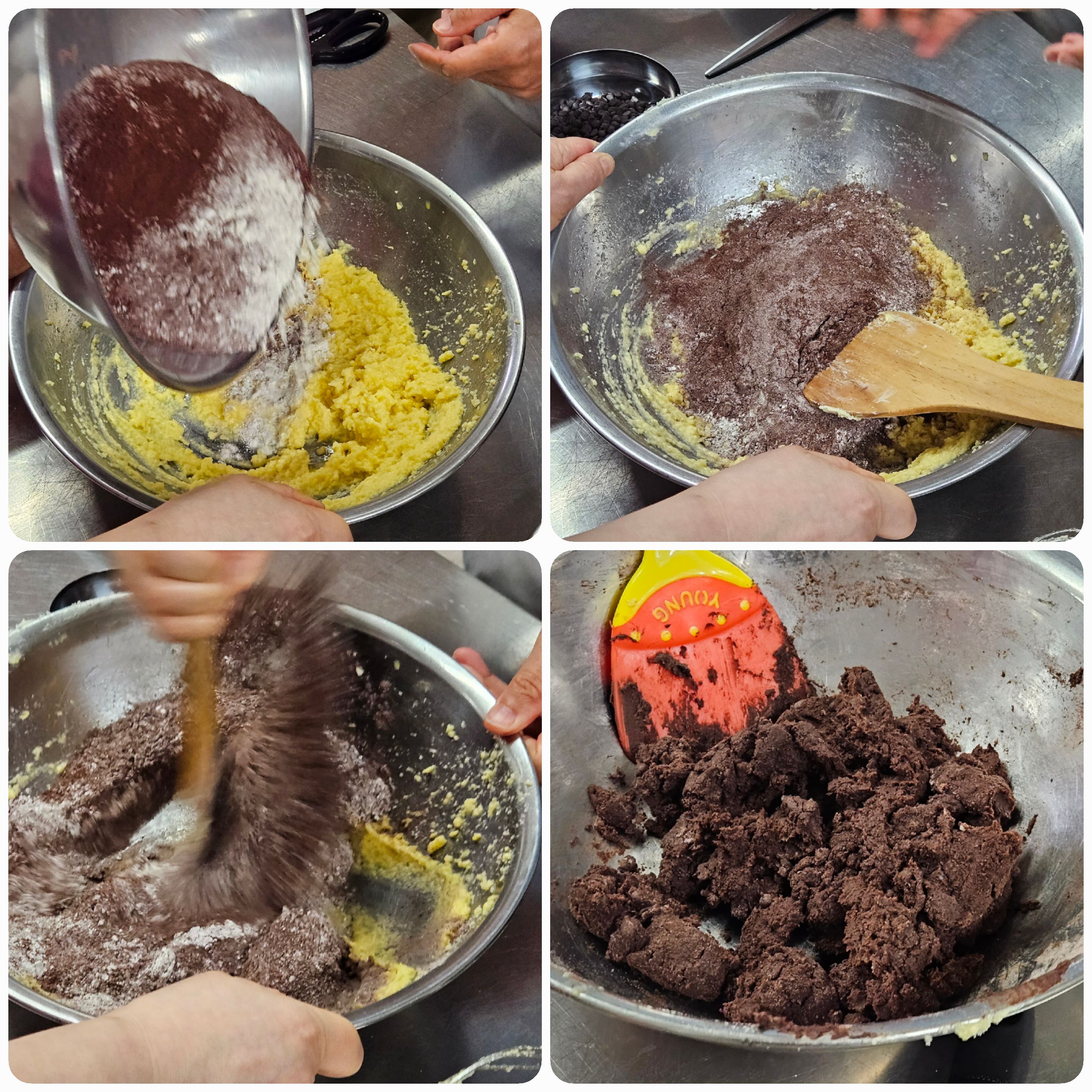 07. 부슬부슬 섞이면 초콜릿을 넣고 섞어줍니다.