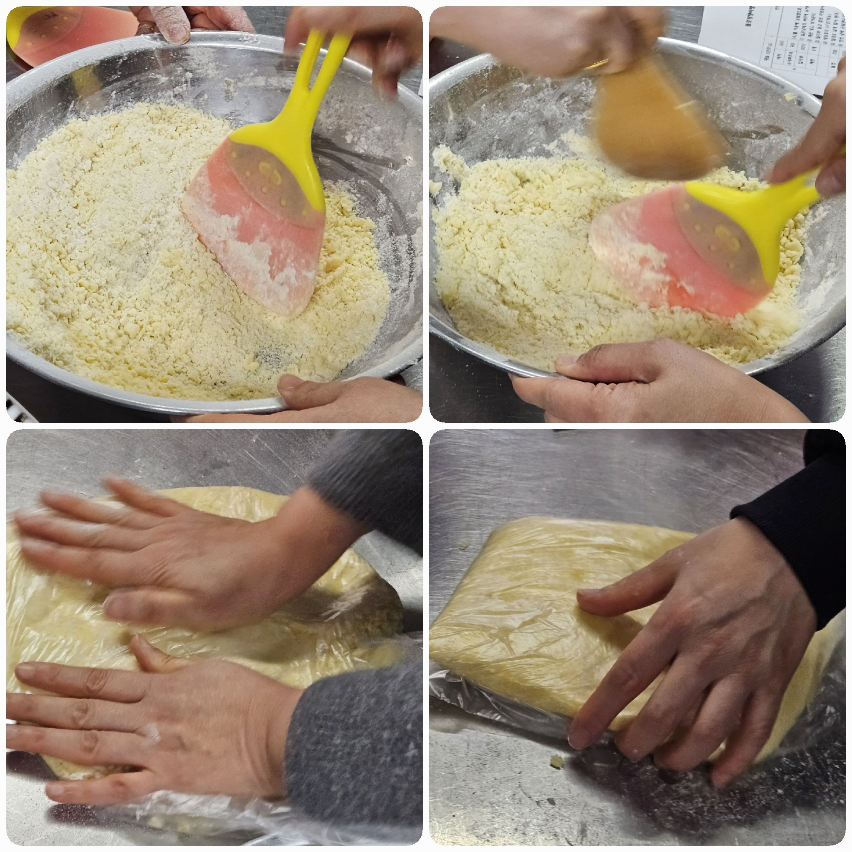 06. 날가루가 보이지 않으면, 비닐에 넣고 한덩이가 되게 접어준다.