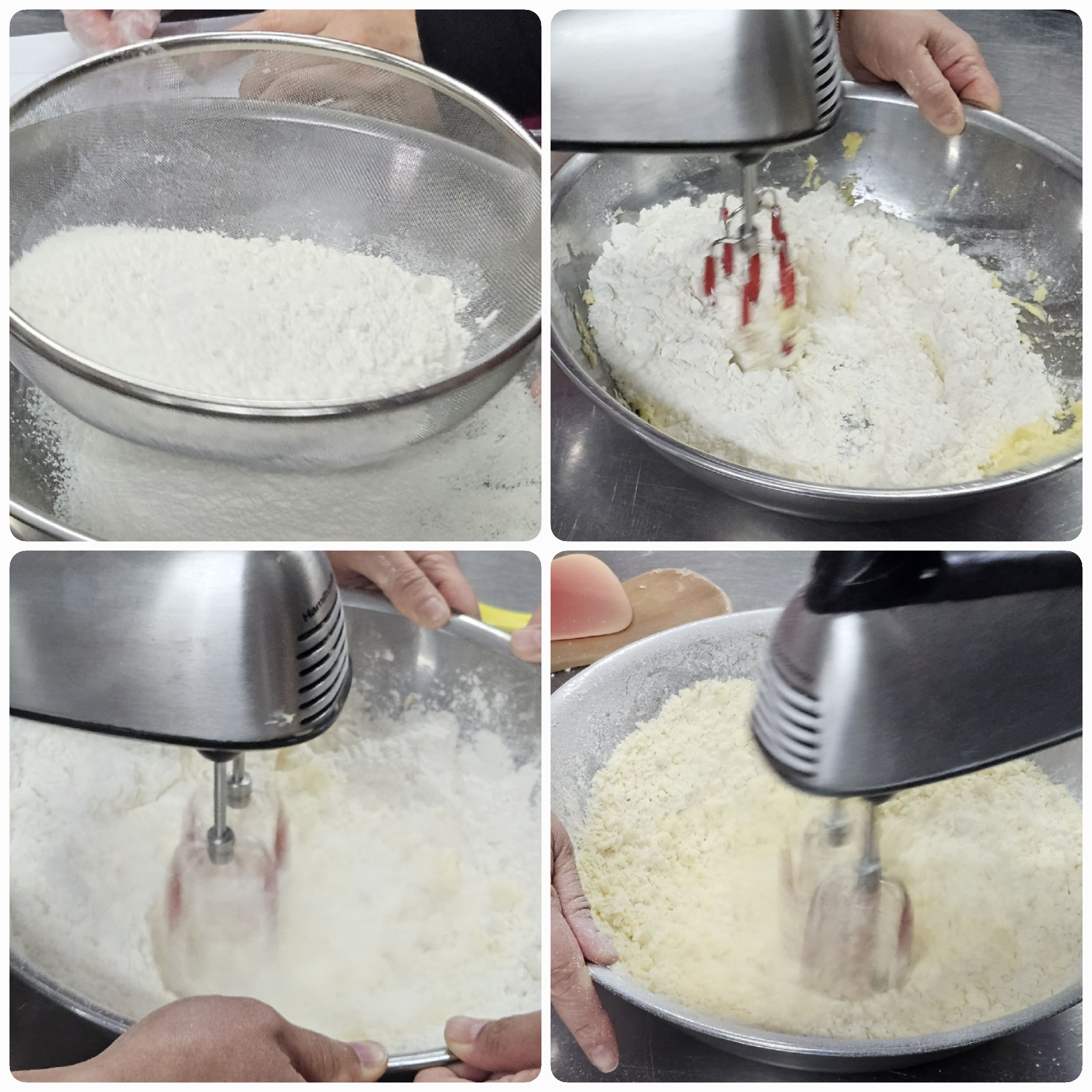 04. 밀가루를 채쳐서 넣고, 믹서로 살짝 섞어준다.