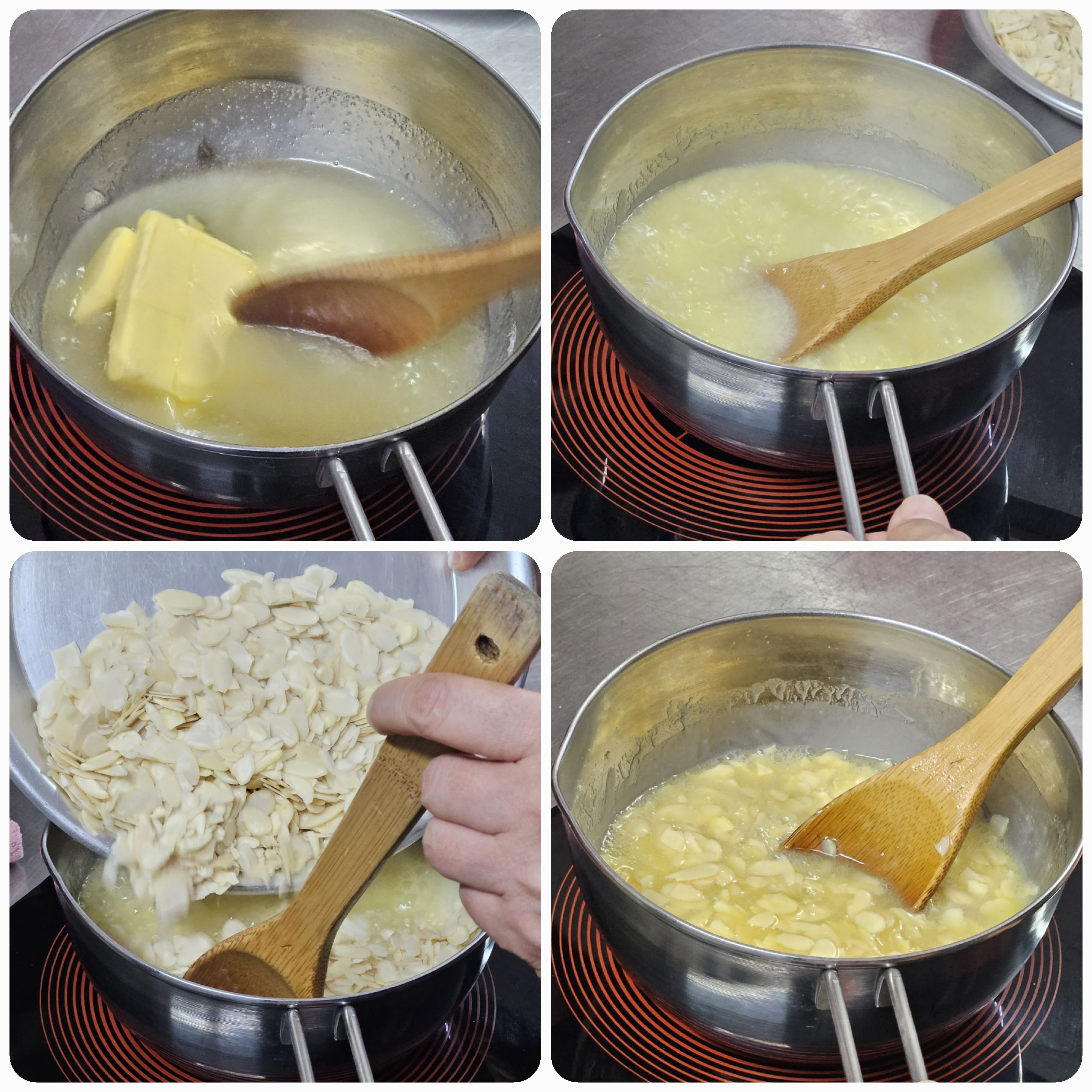 04. 버타가 녹으면, 슬라이드 아몬드를 넣고 1분간 끓여준다.