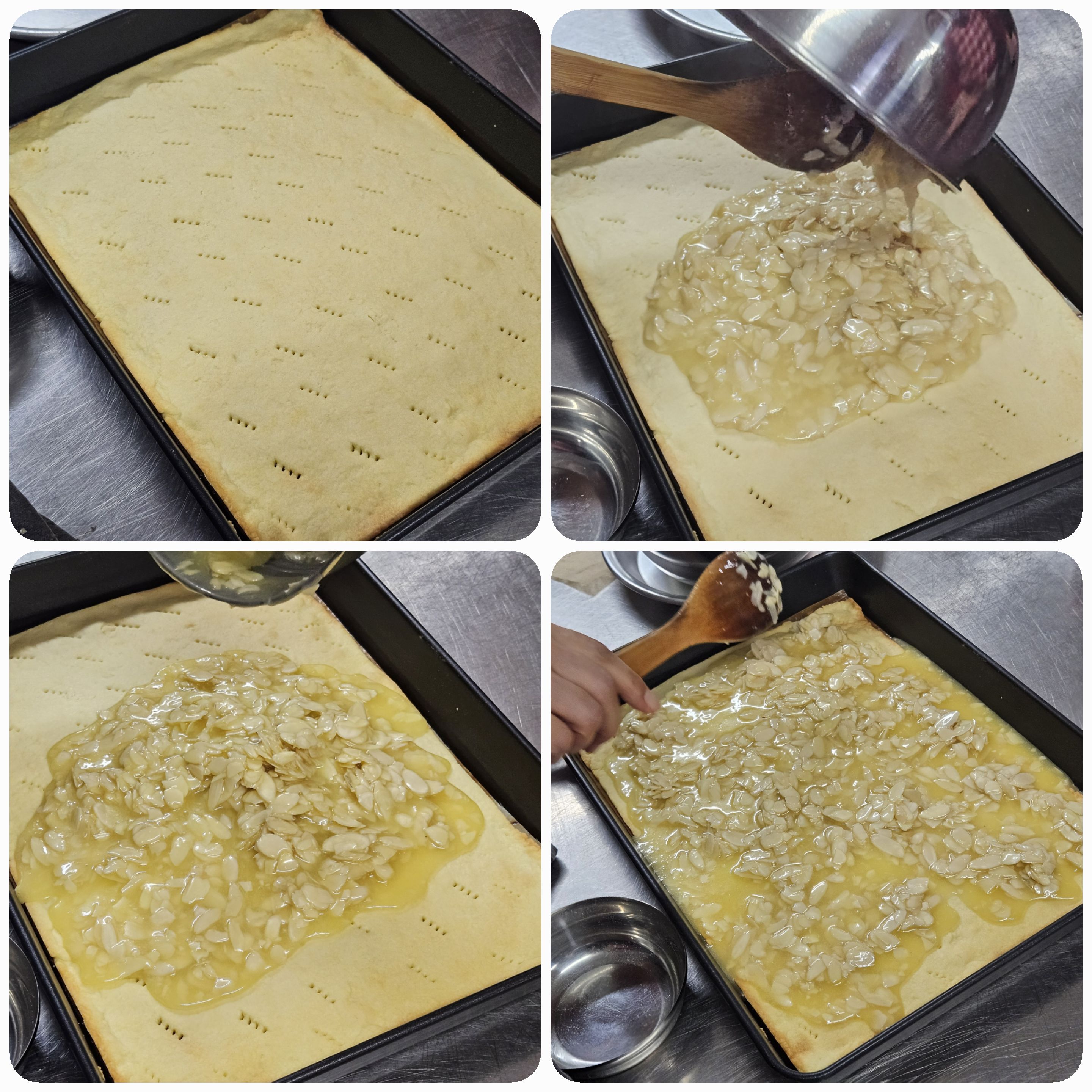 05. 구운 시트(A)에 끓인 버터(B)를 뿌려준다.