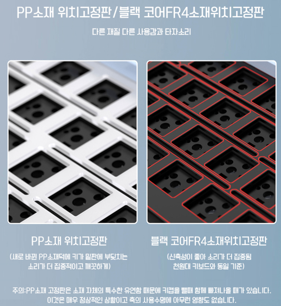 - FR4는 좀 단단한 소재로 스위치를 더 잘 잡아줍니다.