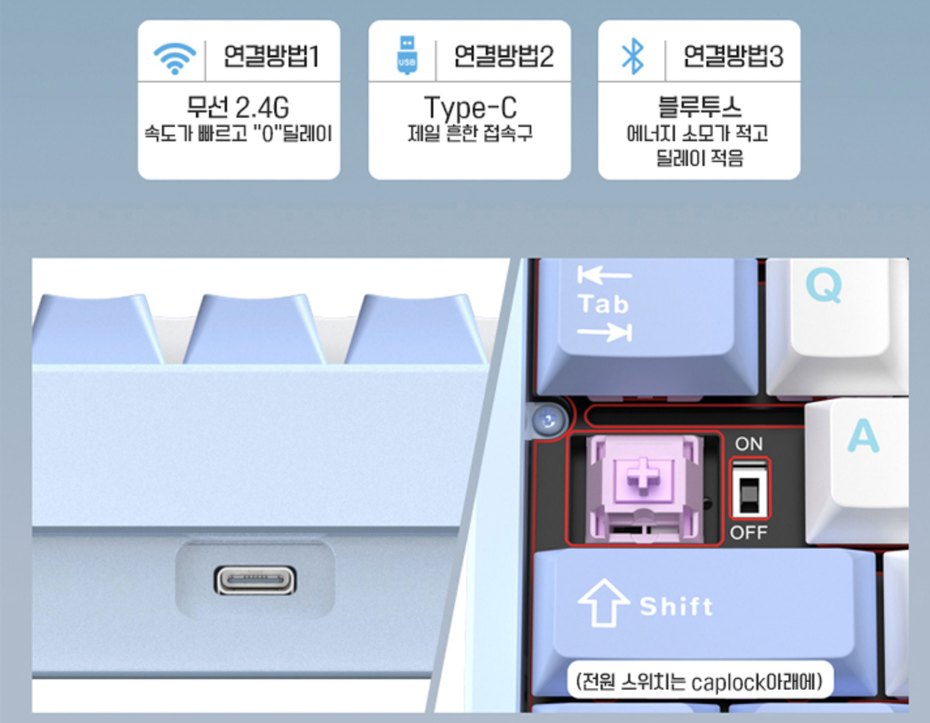 - CapsLock(대문자키) 아래에 배터리 사용 On/Off키가 존재합니다.