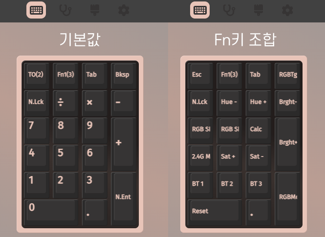 - Fn + 1~3 : 연결 스위치를 왼쪽으로 설정 후,