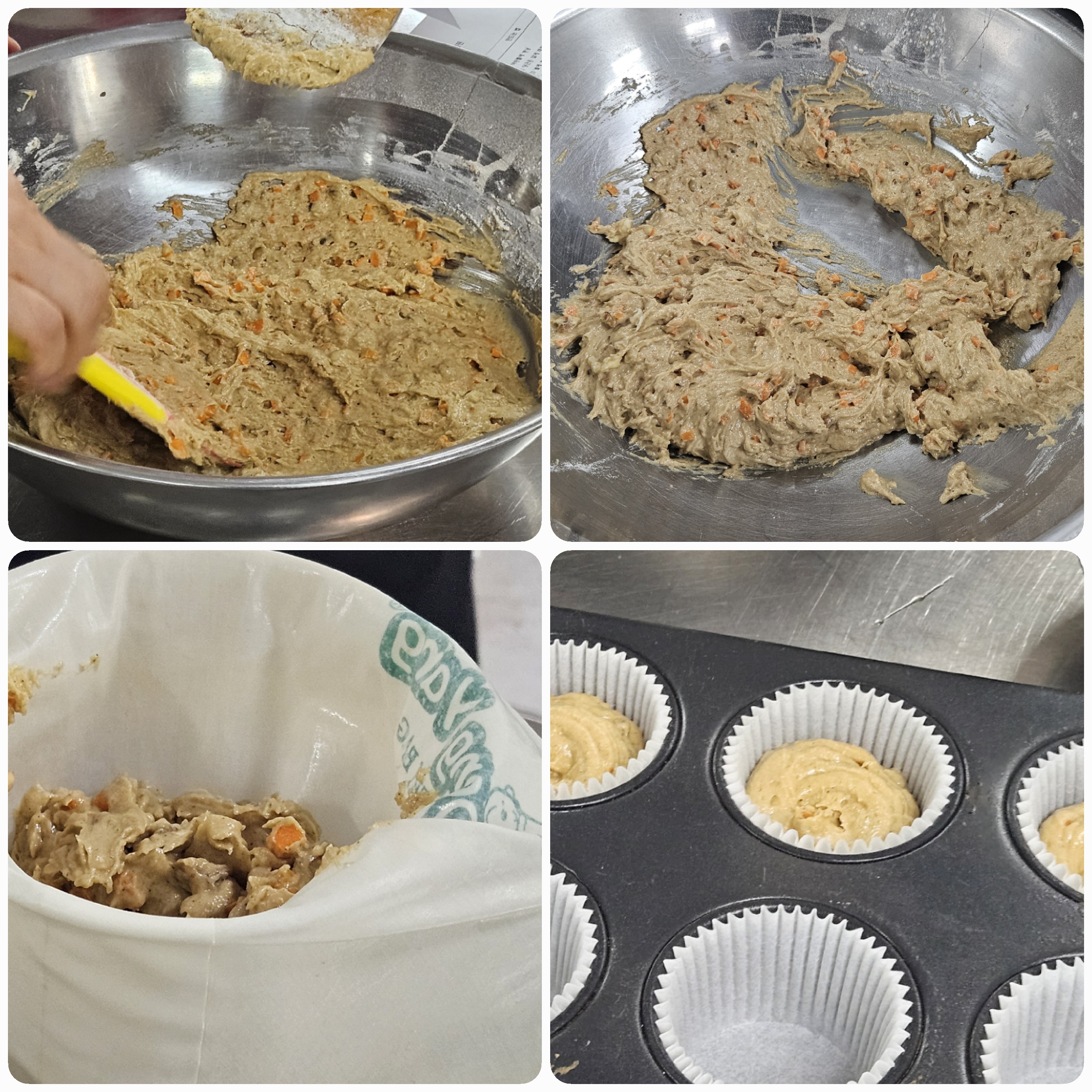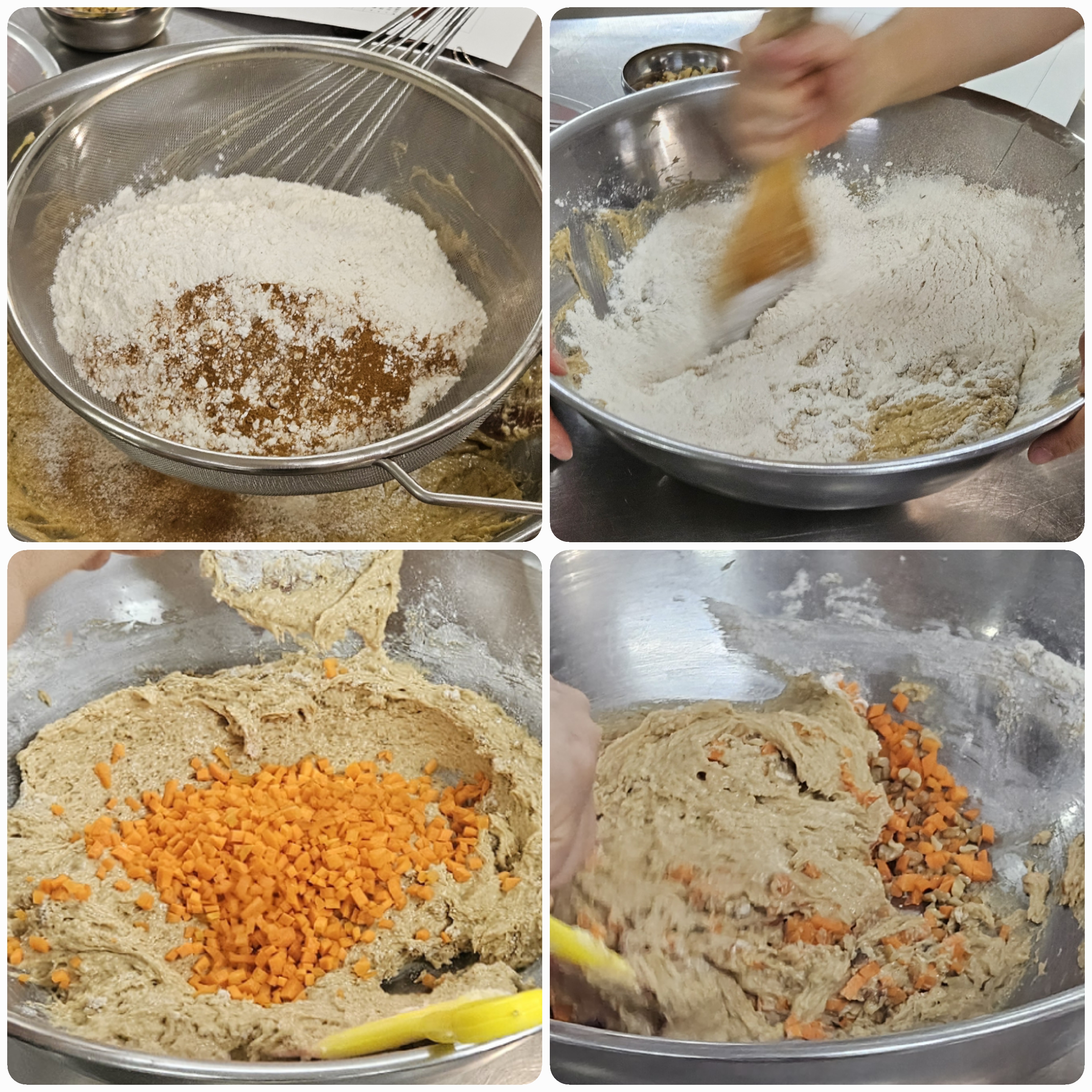 07. 어느정도 섞였다 싶으면, 당근과 호두를 넣고 섞어주세요