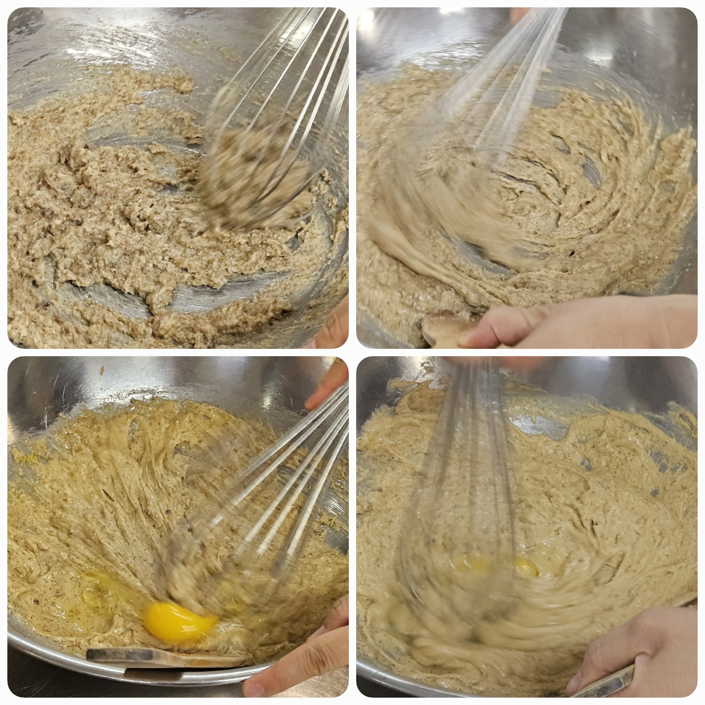 04. 설탕, 소금이 잘 섞이면, 계란을 1개씩 넣고 섞어줍니다.
