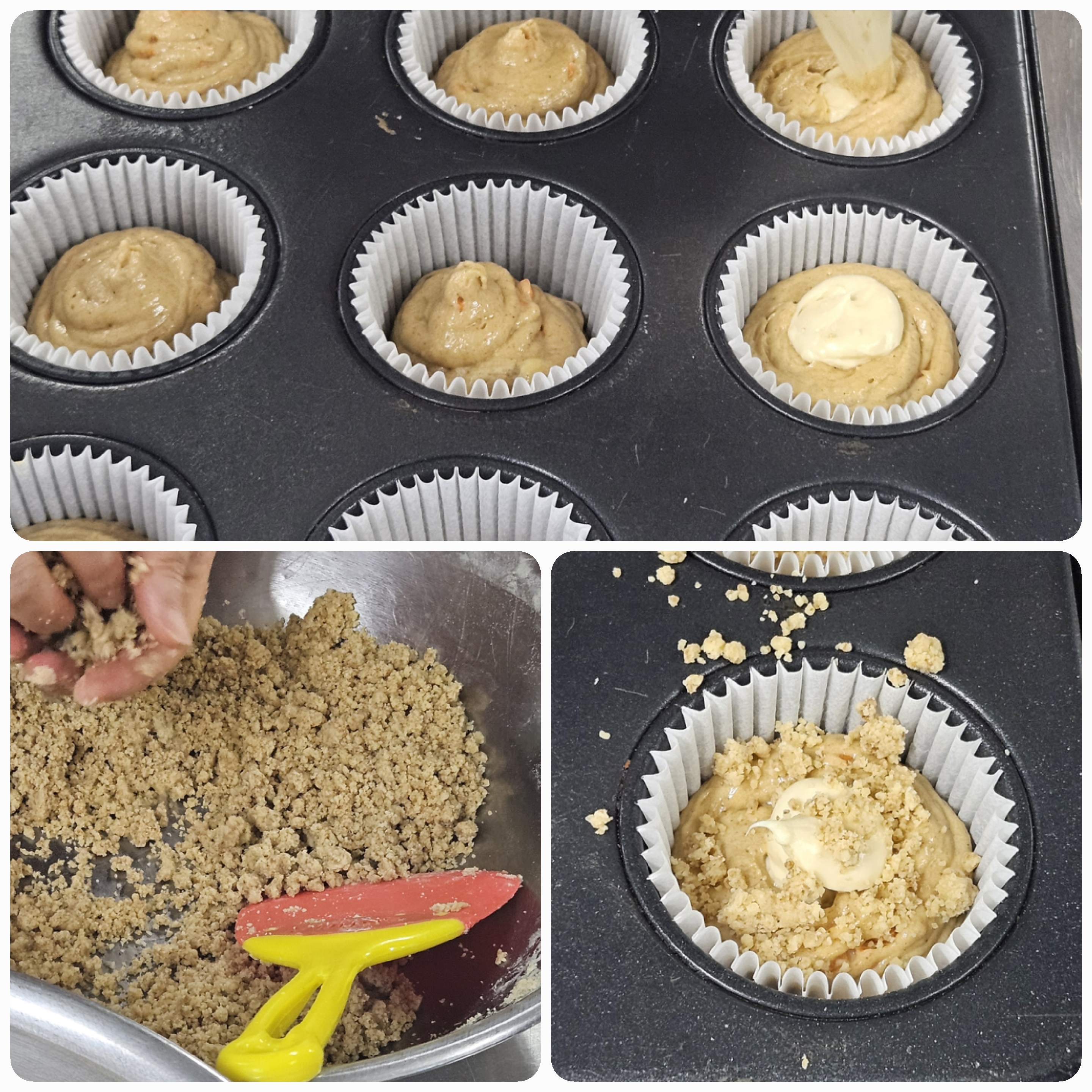 11. 크림치즈를 휘핑한 후, 머핀에 넣고 짜주면, 더 맛있습니다.