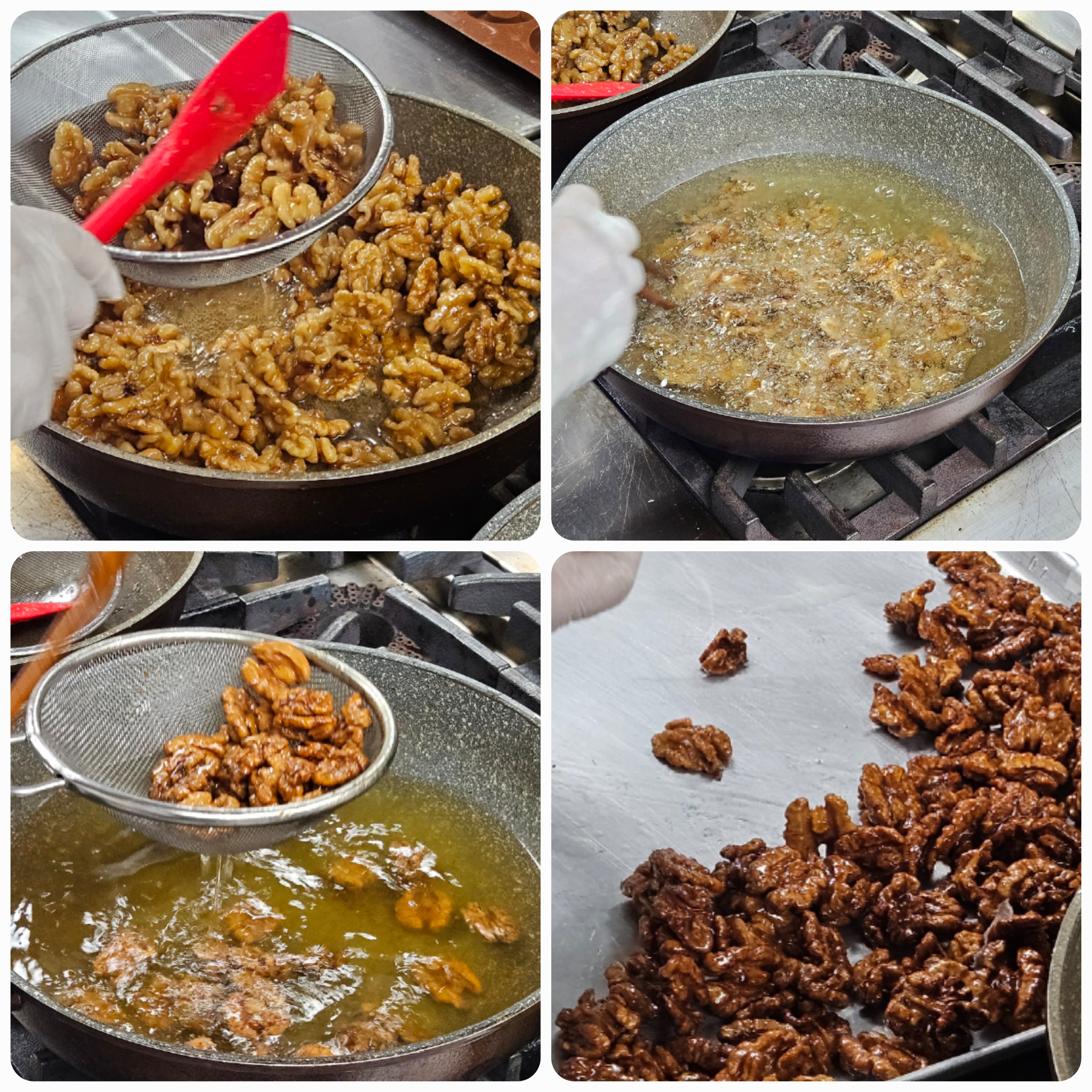 08. 설탕물에 졸인 호두를 기름에 넣고 튀겨줌