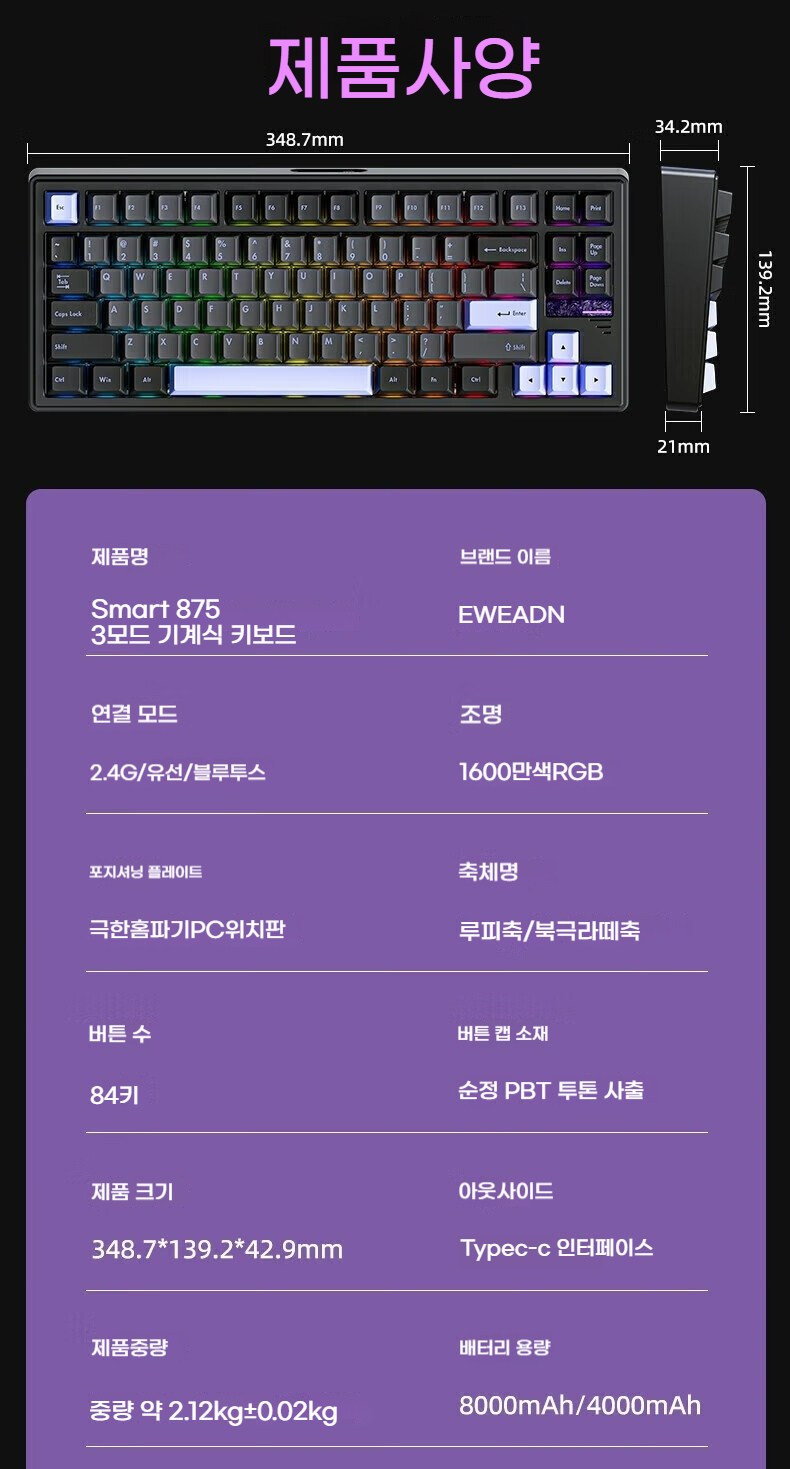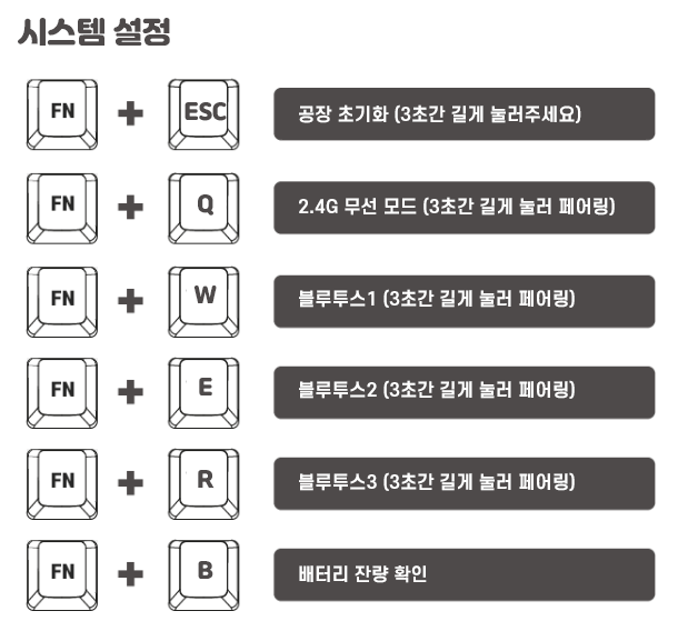 - RGB세팅을 키보드로 할 수 없음 (전용 프로그램으로 해야 함)